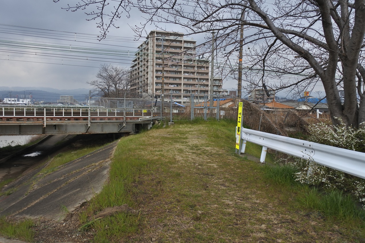 この堤防の合うを歩くのではなく!