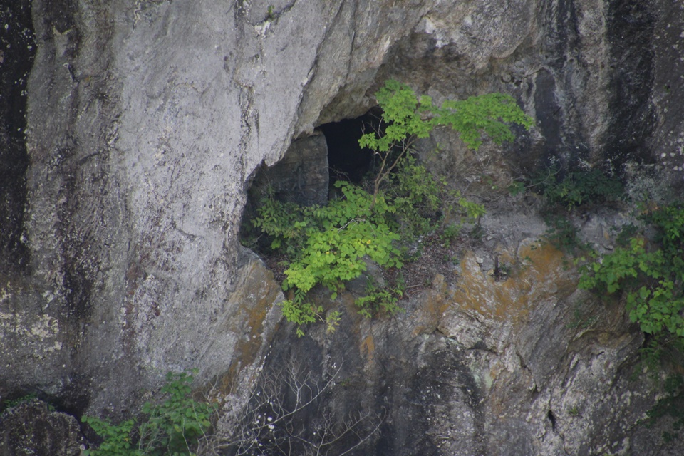 右岸の岩壁に開いている穴!