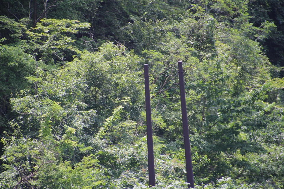 作業用の吊り橋の主塔として使われていたには細すぎるし・・・