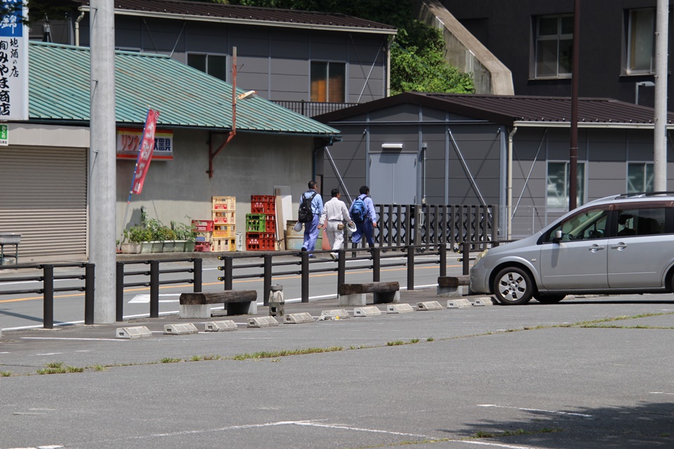 駐車場に、見学者の車