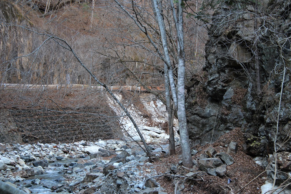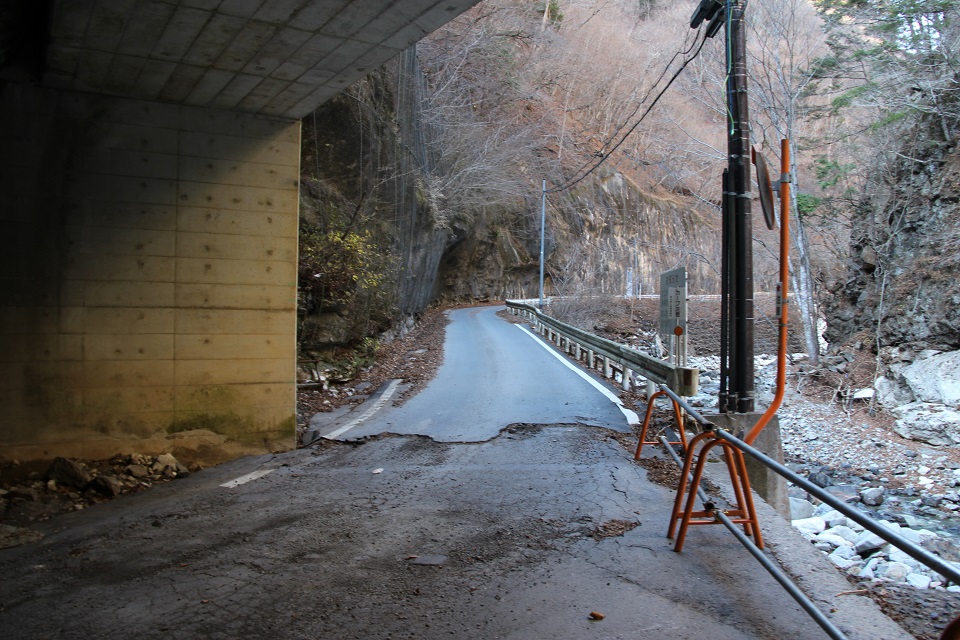 中津川渓谷に辿り着く途中の片洞門が圧壊して・・・