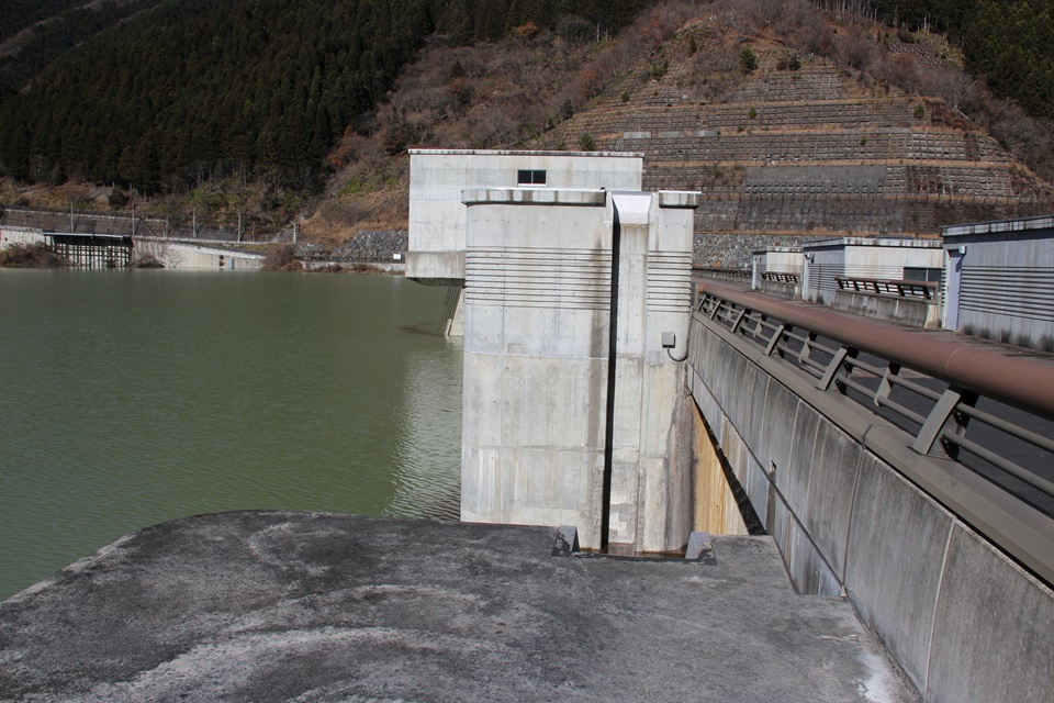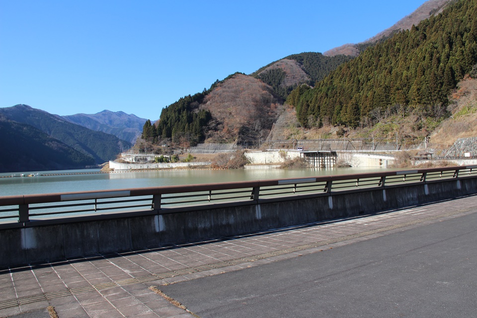 やっぱし堤体の上から眺める景色は最高だぞ!