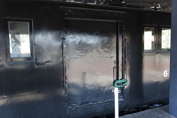 板張りの車内!