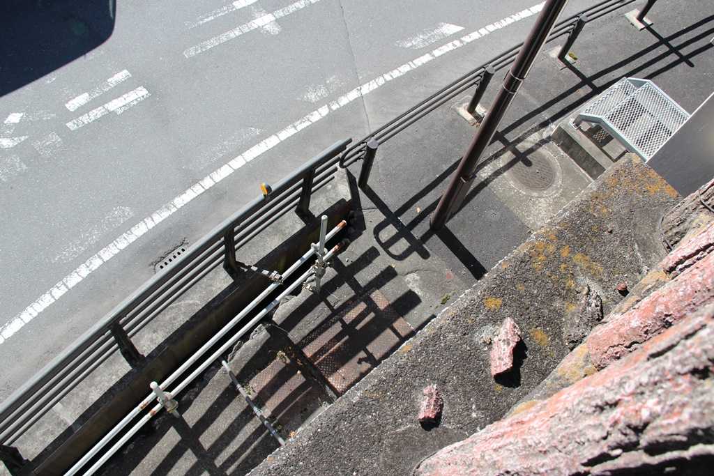 ​​​​ガードパイプが、仮設の単管パイプに変わっている部分