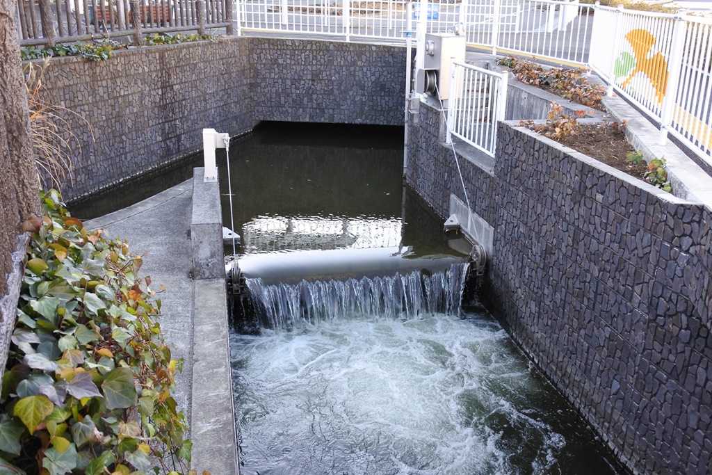 もう片方の幅の 狭い用水路にも、同じ体積の水が流れて行くように制御するシステム