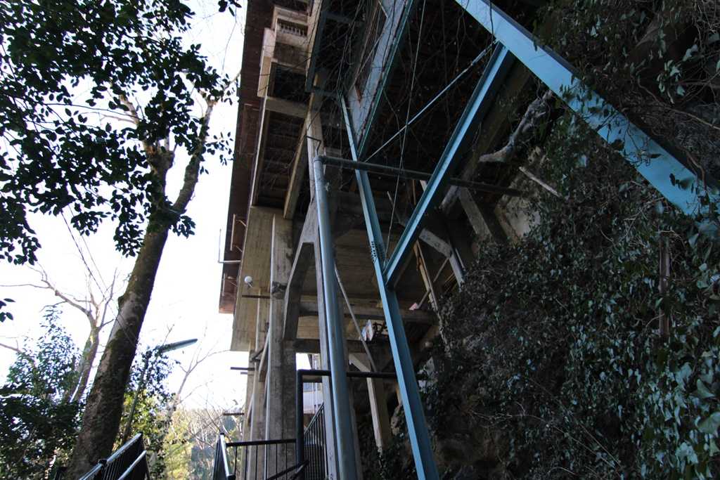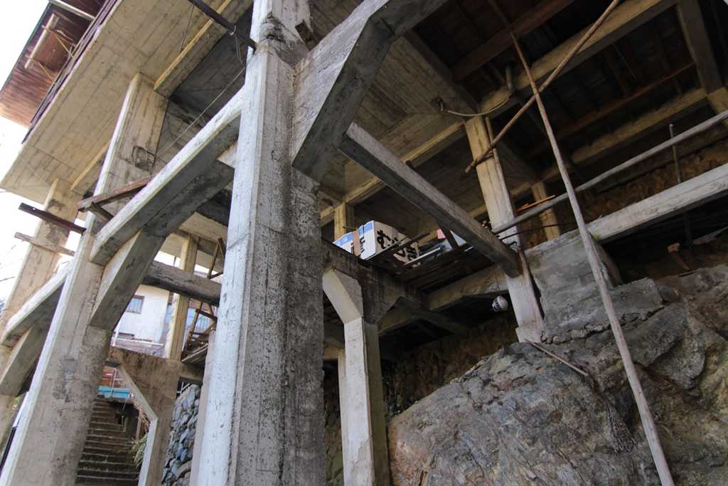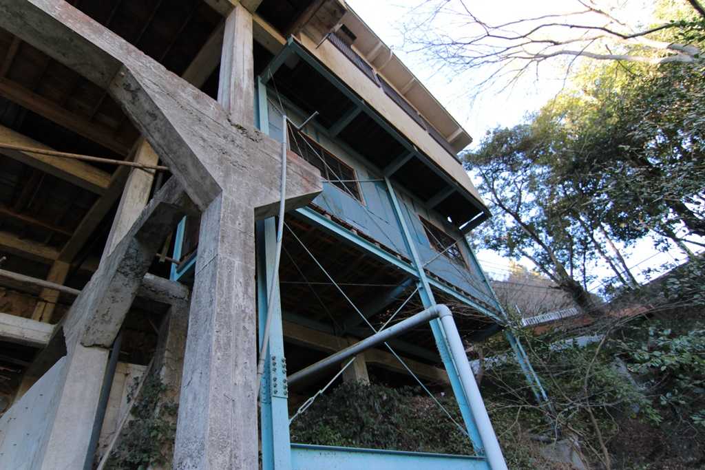 鉄骨で造られた脚の部分は後から追加されたのが良く判るので