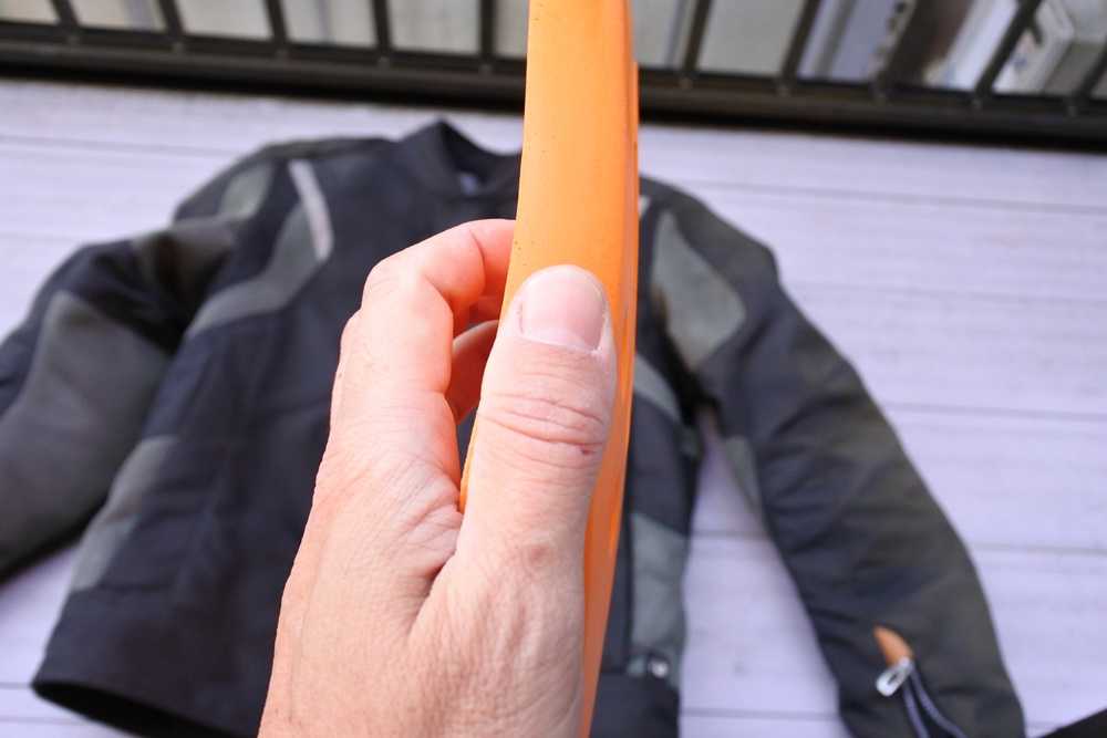 って言うか、ライディンクポジションに適した形状に曲がって成型されてる