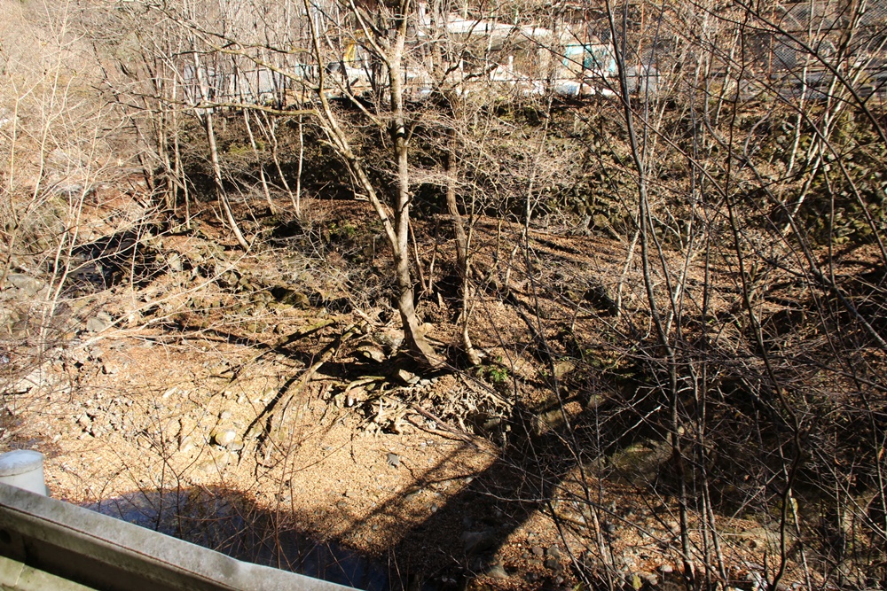 ココから、 解体した小倉沢小中学校の廃材を運び出しているはず