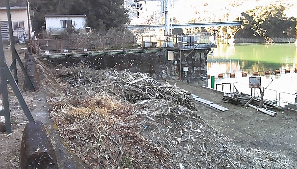 工事中も、相模川の増水に伴う流木や