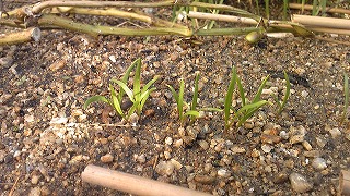 10月16日(火)ほうれんそうの種をまきました。次の日は雨予報だったので急いでまきました。予め一昼夜以上水にひたしておいた種をこれまた予め耕して肥料を混ぜ込んでおいた畑に、すじまきにしました。12日目の発芽の様子です。猫がこないようにまわりに木の枝やらをおいています。草丈2cmくらいでしょうか。じっとみているとバッタが芽をかじっていました。たくさん芽が出てるから少しくらい大目にみてあげようかな。ふと目をやるといちごの枝にびっくりするものが。なんと、かわいい花がさいているばかりか、実がなっている!実は去年もこのような光景を見たのですが、今年も!「ほうこう」は四季なりのいちごだったのかな?このまま一年中実をつけるのかな。