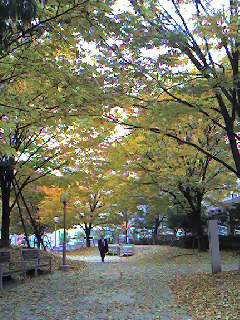 あたり一面敷き詰められた落ち葉を踏む音が心地よく、癒されます。営業マンらしき男性が休憩していたり、親子がお弁当をつまんでいたり。