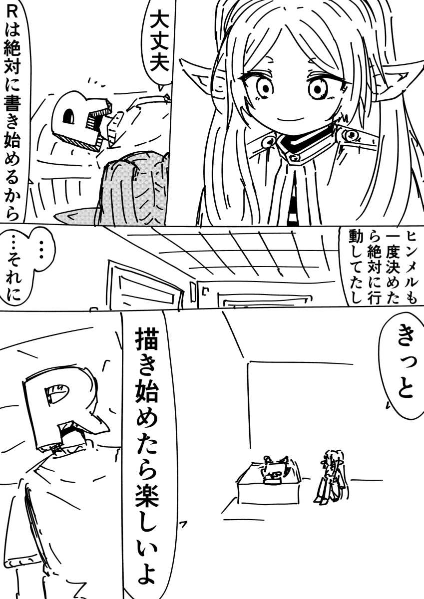 ちょっとだけ頑張ってみようってきになるこれ去年の今頃pixivに投稿した「心にフリーレンを宿しておくと背中を押してくれる」って漫画 (1/1) pic.twitter.com/CAs9DQ48oS— R君 (@Rkun_pixiv) September 30, 2023