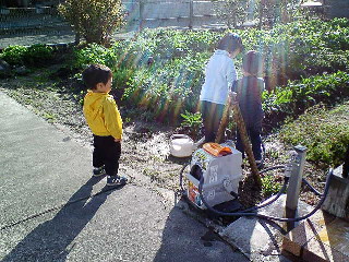 パパの弟が子供を連れて遊びに来ました。Ponは久しぶりに従兄弟と会えるととっても楽しみにしていました。が、Chapoは、と言うと...「おにいちゃん、パチンする」と言って、手を振り下ろすのです。「おにいちゃんは、Chapoのこと叩いたりしないよ。」って言うと、「ちゃうのー。Chapoが、パチンするの」前回、甥っ子にいじめられたことを根に持っているのでしょうか2歳児の頭にも、そういったことは記憶されているのかは疑問ではありますが、とにかくどんなに言っても叩くの一点張りです。その言葉通り、顔を合わせると叩きに行ってたChapo。甥っ子の方は、前回より大人になって(?)ガマンすることを覚えたようです。叩き返さずに、私のところへチクリにきてましたごめんよー。痛い目したよねお姉ちゃんのPonは、めったに会えない従兄弟のかたをもつので、ますますChapoは機嫌が悪くなるばかり。それでも、大人たちがちょっと離れて見ていると、そのうち一緒に遊ぶようになりました。ひとまず安心です。仲良く畑で遊ぶ三人。田舎の風景ですよね。今度会えるのはまた来年です。仲良くなったこと忘れずにいてほしいです