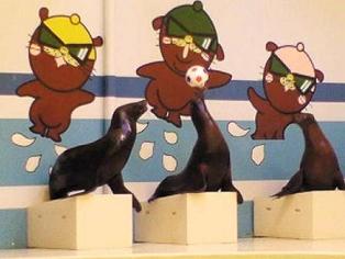 年末にリニューアルしたという県内で唯一の水族館へ午後から行って来ました行って人の多さにびっくり。この水族館は、私が子供のときからある古い水族館なんですけど、はっきり言って駐車場にこんなにいっぱい車が止まっているのを初めて見ました年末から地元新聞で大きく取り上げられていたもんねー。うちのPonやChapoぐらいの子供連れでいっぱいの水族館へ入ると、ちょうどイルカショーをしてました。今までは近くでゆっくり見た後、イルカに餌やりを何回もさせてもらったのですが、もうそれはなくなってました選ばれた子供が2人だけ、握手させてもらって餌やりをちょっとだけしただけです。アシカショーは、せめて場所だけでもいいところをと思い、30分前からパパが場所取りをしてくれました。でもね、残念ながら前回の「アシカの学校」っていうショーの方が断然おもしろかったんですアシカ達が楽器を演奏したり、足し算したりしてたのが全くなくなってまして、今回のショーでやったのは、ボールを使った芸(水球もどき)とまたまた選ばれた人とのふれあいで終わり。しかも、選ばれた人たちが近づくと「アオーッ」って威嚇するみたいに吠えるんですよ。大丈夫ですよって言うけど、お客さん達相当ひいていました。以前とアシカ君たちは代わっていないけど、担当の人が代わっていたから、きっと人間の方が未熟者なんでしょうね。Ponは、「つまんなくなっちゃったね。前の方がよかったなあ。」と、がっかりしてました。リニューアルしたっていうなら、設備だけじゃなくて質も向上させてもらいたかったです。しばらくはこの水族館には行くことはないでしょう。残念。