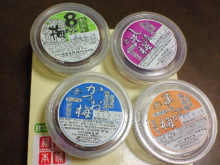 先日注文した梅干しが届きました。4種類の梅干しが3個づつ入っていました。とっても粒が大きくて、さすが紀州南高梅って感じです。今日は残念ながらシチューだったので、試食は明日です。楽しみだなー)^o^(
