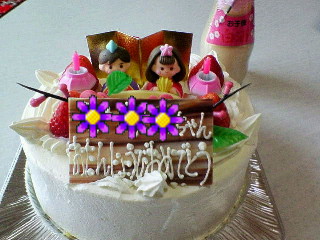 ひなまつり、だけじゃない。 Ponのお誕生日だったのです。 祝8歳!おめでとー\(^O^)/ おひなさまみたいに美しくなって、玉の輿ゲットしてねー。なーんてね(^.^)b ケーキも毎年、おひなさまバージョンで、サービスは子供用白酒でした(^o^; Chapoもケーキが食べれて、ごきげんでした。