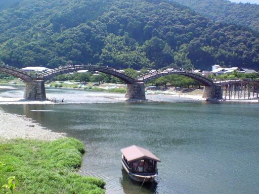2日目です。まず最初に中原中也記念館です。ハッキリ言って子供連れが行っては、ひんしゅくをかってしまいそうな静かな場所ですでもね、私がどうしても行きたかったのです中学生のとき暗唱させられた「月夜の浜辺」。ずーっと心に残っていました。Ponは、NHKの日本語であそぼで時々詩の一節が出ていたので、時々興味を持ってました。でも、やっぱりPonとChapoは走り回るのが楽しいようで。。。パパが黙って2人を私から遠ざけて相手してくれてました。おかげでゆっくり鑑賞できて、大満足さて、湯田温泉のほかの観光スポットは、お寺や庭園で、残念ながら子供達が喜んでくれそうもありません。とりあえず、サビエル記念聖堂で写真を撮ると岩国へ移動しました。やっぱり錦帯橋は外せませんChapoは、移動中車内で寝てしまいそのままパパが抱っこして橋を渡りました。起きているくせに、「歩くか?」って聞くと、すばやく寝たふりパパは、片道でもうギブアップしちゃいました。ヘトヘトのパパのためにお茶をすることに。パパ「抹茶シェイク」Pon 「オレンジジュース」Chapo...「うどんたべるー」お茶するつもりなのに。。。まあ、せっかく岩国に来たんだからうどんだけじゃなく、郷土料理の押し寿司のうどんセットにして、私が押し寿司をいただきました。昼食たべているのに旅行に行くとどうして胃袋が大きくなるんでしょうかね。もともと大きい上にさらにビッグになってます。みんな暑さで疲れてしまったので、もう帰ることに。瀬戸大橋で夕日の中の島々を見ると帰ってきたなーって思いました。たった1日だけで大げさなんですけどねこんなこと言いながら、つぎの家族旅行はどこに行こうかなーってもう考えています。