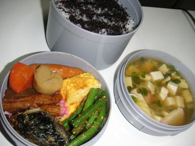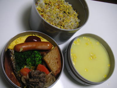 本日のお弁当です。【メニュー】・焼塩鯖・金時豆・ブロッコリー・ウインナー・卵焼き・ビーフシチュースープのところへ昨日の残りのビーフシチューを入れたけど、大丈夫かな?冷めたら美味しくないかも。。昨日は、寝室の模様替えをしました。寝室の窓の結露がものすごく酷いため、ベッドを移動させ、拭き易いようにしました。まだ使い勝手がなれてないけど、使いにくかったら元に戻すかも。。