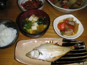 今日の晩御飯は「ぶりのしょうが焼」です。後は、里芋の煮物、澄まし汁です。ぶりのしょうが焼は、しょうが醤油につかっているのを買ってきました。これを焼いただけ。。旦那さんは、今日はフットサルの練習。。晩御飯は一人で食べました。旦那さんは、夜遅くにご飯を食べます。レンジでチンしても美味しく食べられるのを作らないといけないので、帰りの遅いときのメニューは、結構考えます。