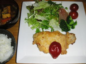 今日の晩御飯は「豚カツ」です。後は、サラダと味噌汁、キムチです。豚カツのおとものキャベツの千切りは、すっかり忘れており、生ハムを添えたサラダになってしまいました。油をケチって中古を使ったら、カリっと揚がりませんでした。ですが、いい豚肉だったのか、良く叩いたのが良かったのか、肉厚で美味しいお肉でした。今日は洋食を作ろうと思っていましたが、豚カツは洋食ではないですかね?味噌汁だし。。定食ってことにしときましょう。