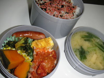 本日のお弁当です。【メニュー】・トマト煮込みハンバーグ・ブロッコリーのゴマ醤油煮・かぼちゃの煮物・ウインナー・卵焼き・小松菜とじゃがいもの味噌汁夜勤最終日のお弁当です。旦那さんのお仕事、最近忙しいみたいで、残業続きです。だから、朝は帰ってくる前に私が仕事に出掛けますので会えません。ここ三日間、夕食時の1時間だけしか会ってないですね。。