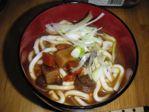 晩御飯は「カレーうどん」でした。この日もバッグスクールへ行っており、夜遅かったため、うどんです。レトルトのカレーをだし汁で伸ばして、うどんを入れて、カレーうどんです。夜遅いので、ガッツリ食べず、うどんくらいがちょうど良いです。この日の帰りは、遅い上に、電車の人身事故に巻き込まれ、さらに遅くなりました。週に一度乗るか乗らないかの電車で、人身事故を目撃する頻度が高いです。平和にいきたいものです。。