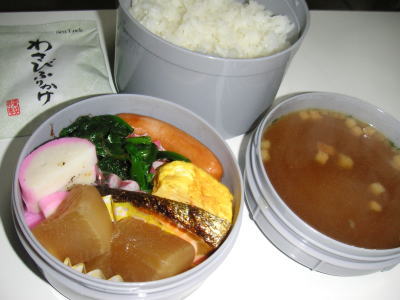 本日のお弁当です。【メニュー】・ぶり大根の大根・焼塩鮭・ほうれん草のおひたし・かまぼこ・ウインナー・卵焼き・オニオンコンソメスープ(インスタント)昼勤務のお弁当です。やっぱり朝からスープは作れませんでした。。ので、インスタントのスープです。今日は雪が降っています。車の上にうっすら白いのが乗っている程度ですが・・寒いです。昨日、今日と同じような気候の中、一日中外にいたかと思うと、熱が出そうです。今日はぬくぬくと過ごすつもりです。
