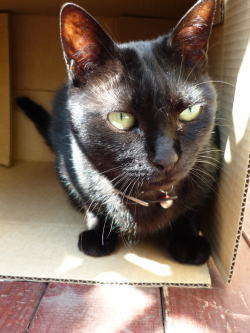 昨日、デジカメを購入しました。今までのは、5年前?4年前?くらいに買ったやつだったので、どれを見ても機能的。。メモリーカードも安くなりましたね。。早速、実家の猫撮りました。デッキに置いたダンボールの罠にはまっています。。今日の晩御飯は、いつもの何倍も美味しく写るはずです・・・