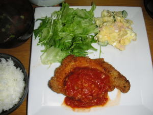 今日の晩御飯は「豚カツ」です。後は、ポテトサラダと味噌汁です。豚カツは、トマトソースで食べます。トマトソースはいっぱい作りましたので、明日オムレツでも作って掛けて食べたいと思います。今日は、いちごの苗を買ってきて、プランターに植えました。1パック分くらいのいちごが取れたらいいなー。。