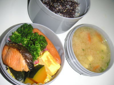 夜勤弁当です。【メニュー】・焼塩鮭・ブロッコリー・かぼちゃの煮物・ウインナー・卵焼き・味噌汁