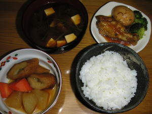 晩御飯は「鰯の蒲焼き」でした。後は、高野豆腐と、納豆、味噌汁です。高野豆腐なんて、久々に使いました。煮汁の色を薄く仕上げたかったので、薄口醤油を使いました。久々に作ったわりに、美味しく出来ました。鰯も、丸々買ってきたものを自分で手でさばいて作りました。こうすると、多少手間は掛かりますが、安く出来ますね。