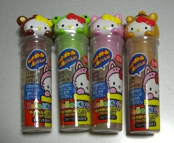 「キティ キャラボトルキャンデー」全8種類。昨年までは「キティボトルキャップキャンデー」として第6弾まででてたけど、今年はボトルの栓になりました。テーマは動物。クマ・カエル・ネコ・ウマ・トラ・ウシ・シマウマ・カバです。このシリーズは飾る用と使う用を買ってます。今回も数種類、2個買いました。鞄にいれるのでボトルキャップの方がいいんだよね。栓だと何か不安。でもこれは壊れなさそうだから、その点はいいかな。