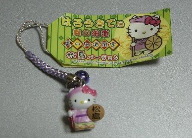 ご当地キティの根付「奥の細道限定 松島バージョン」笠と杖を持って旅をする松尾芭蕉キティ。いろんな場所のバージョンがあるのかな。