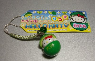 ご当地キティの根付「大分限定 カボス帽バージョン」「大分限定 カボス風呂バージョン」カボス帽、なんかサザエさんのOPの最後を思い出しました。カボス風呂、気持ち良さそう。 大分限定カボス帽キティ根付 大分限定カボス風呂キティ根付