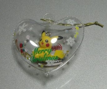 コカコーラ製品の2LPETに「ポケットモンスター クリスマスオーナメント」が付いてました。全6種類。迷うことなく「ピカチュウ」を選びました。ハート型のバルーンの中にピカチュウが入っています。かわいい~。もうすぐクリスマスですね。