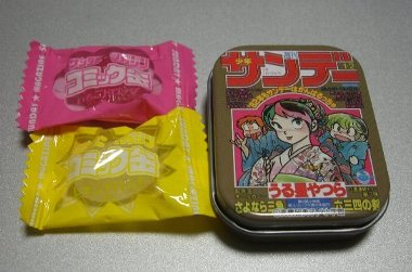 セブンイレブンでやってたサンデー・マガジン50th ANNIVERSARY企画の「サンデー・マガジン コミック缶」が特価で売ってたので購入しました。タッチが欲しかったんだけど、無かったので残念。ほとんど無かったけど「うる星やつら」があったので良かった。缶の中に飴が2個入ってました