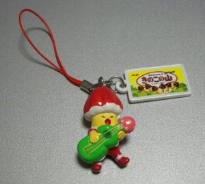 セブンイレブン限定できのこの山、たけのこの里を2個買うと「冬のきの山さんストラップ」がもらえました。全3種類だったかな。色違いなんだけど、クリスマスっぽいから「赤」を選びました。このキャラ、なんか微妙だな。たけ里さんっていうキャラはないのかな。