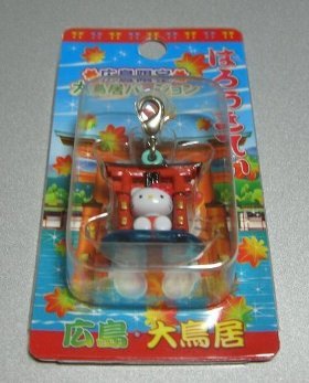ご当地キティのファスナーマスコット「広島限定 大鳥居バージョン」「広島限定 カキバージョン」鳥居にキティちゃんが挟まってるみたい。カキってあたるから怖いけど、気持ち良さそうに寝てるキティ、かわいい~。