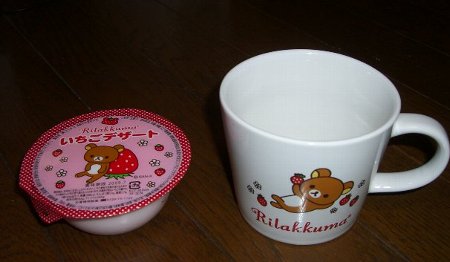 ローソン限定商品の「リラックマ オジナルマグカップ付きデザート(いちご)」購入しました。春のリラックマフェアの期間限定商品。前回の秋のリラックマフェアはみかんゼリーでした。前回買ったとき、マグカップに直接デザートが入っている大きなゼリーだと思ったら、違ってました。上にのせてるだけで、普通サイズのデザートでした。なぁーんだって思っちゃった。まぁマグカップ目当てで買ったからいいんだけどね。 前回