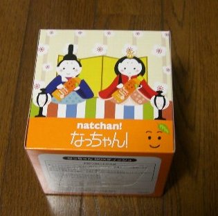 今日はひなまつりということで、それにちなんだおまけの紹介です。なっちゃんの500mlPETを4本購入すると「なっちゃんBOXティッシュ」がもらえました。オレンジ、リンゴ、白いなっちゃんの全3種類。なっちゃんといえば「オレンジ」かな。そう思ったので選びました。側面の4面のうち1面がひなまつりのデザインでした。あとの3面も表情が違っていてかわいい。中身は普通のティッシュでしょうけど、もったいなくて使えません。