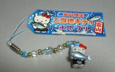 ご当地キティのビーズ根付「富山限定 氷見・ブリ」2009年の新作です。大きなブリを抱えた漁師キティ。 【富山限定】はろうきてぃ「氷見ぶり」ビーズ根付