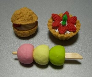 100均で「おもしろケシゴム」を購入しました。「デザート」「ごはんだよ」「くだもの」「ゴルフ」ぷちサンプルみたいですよね。かわいい~。これが消しゴムでてきてるってすごいな。 シュークリーム 白 タルト 白 三色団子 ごはんだよ いちご バナナ メロン
