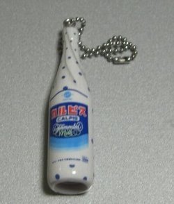カルピスの紙パックに「カルピス復刻版 ミニチュアキーホルダー」が付いてました。全7種類。瓶のカルピスって懐かしいな~。子供の頃、よく飲んでた。デザインもいろいろ変わってるんですね。