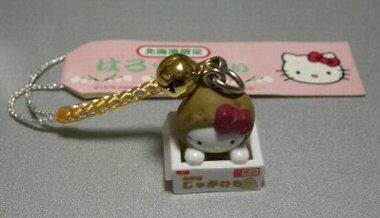 ご当地キティの根付「北海道限定 じゃがいもバージョン」じゃがいもの箱に入ったキティ。このまま出荷されていくのかな。 (ご当地キティ)北海道限定じゃがいもハローキティ根付ストラップ
