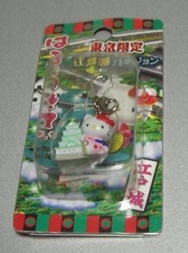 ご当地キティの「東京限定 江戸城バージョン」着物姿のキティがお城に抱きついている。お城サイズのキティ・・・。 [ご当地キティ]東京限定★江戸城キティファスナーマスコット [ご当地キティ]東京限定★江戸城キティ根付