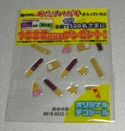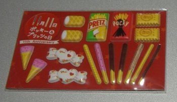ポッキー&プリッツの日、スーパーではポッキーに「オリジナルデコシール」が付いてました。これは1個に1枚。コンビニは2個買わないといけなかったので、サークルKサンクスのシールに比べたらちゃちいですね。これもコロンやカプリコもあってかわいいけどね。ポッキー&プリッツの日のおまけの紹介、これで終わりです。去年はコンビニ3店でゲットしたけど、今年はコンビニ5店とスーパーで6個ゲットファミリーマートだけ、毎年、何もしてないけど、なんでだろう。おまけのために、ポッキー11個も買ったけど、どうしよう。食べきれない~。