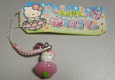 ご当地キティの根付「奈良限定 さくらキティ」桜に乗ったキティ、リボンも桜でかわいい~。目を閉じて何を考えてるのかな。 【ご当地キティ】奈良限定ハローキティさくらキティ根付ストラップ
