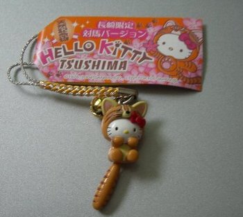 ご当地キティの根付「長崎限定 対馬バージョン」これはファスナーマスコットも持ってます。山猫キティです。キティも猫だけどね。