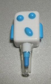 袋入りの果実キングぷっちょに「ぷっちょミニペン」が付いてました。全5種類。つなげれるみたいです。「水色」を選びました。かわいいというよりへんてこですね。