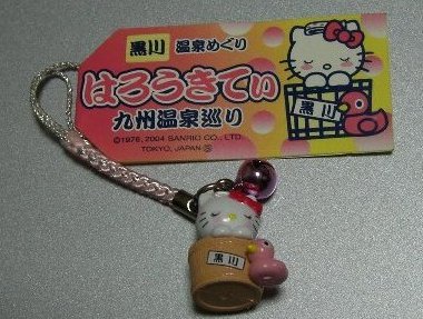 限定キティの根付「温泉キティ」富士山が見えてるのか、壁に富士山の絵が描いてあるのかどっちなんだろう。 温泉限定温泉キティ根付ストラップ